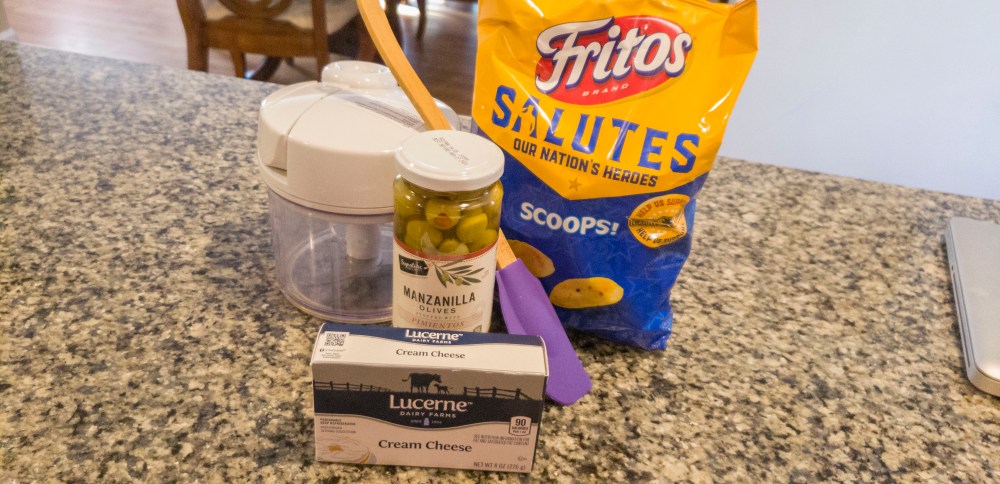 This is by far the best dip (as long as you like green olives). This is definitely my go to dip when I have company (especially when Shannon is over), or when we just feel like having a snack. The other night I was by myself because my husband Ronnie had a going away party and my son Anthony was at the gym. So, I’m thinking of what I should eat, and do I really feel like cooking for myself? I knew I had a bag of Fritos hidden. I always try to have cream cheese in the fridge, and I buy a jar of green olives every time I go to the market. So what is better than dip for dinner?? Not much!