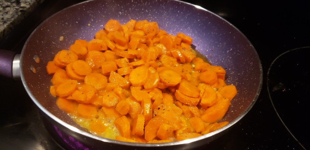 Saute the crushed garlic and seasoning with 8 tablespoons of butter, (you can always add more or less depending on how many carrots you use). I then add the carrots, cook on medium heat until they are halfway cooked. Add the cheese, parsley, and breadcrumbs; if you need more butter add it now. I usually cook them until they are crunchy, not mushy.
