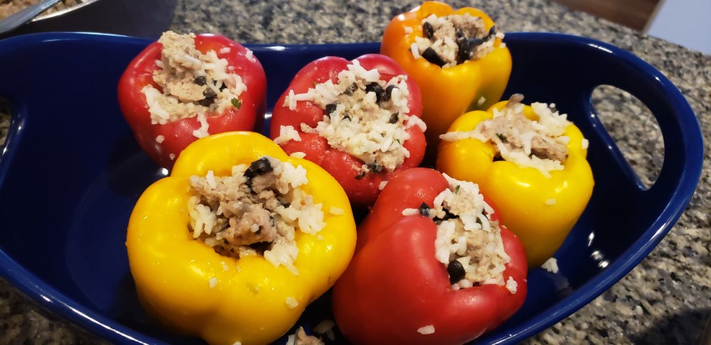 Today was one of those days – I didn’t know what to make for dinner. My daughter mentioned that she was making stuffed peppers on Thursday, so I thought I would do the same for tonight. I don’t think that I ever made stuffed peppers with meat, I always make them with lentils. My Dad used to make the most delicious stuffed peppers (with meat), but I never got his recipe. I never wanted to make peppers with meat because they would never be as good as my Dad’s stuffed peppers. This is what I came up with. Enjoy.
