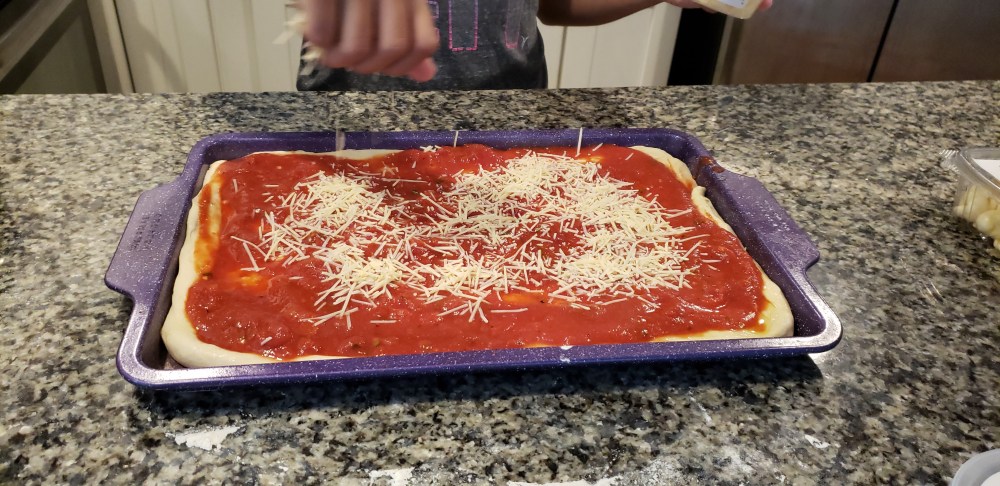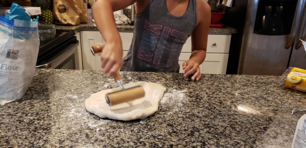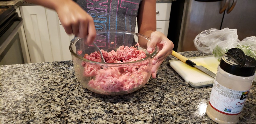 Mia is so excited to help me cook Sunday dinner, she told me she wants to learn all of my recipes. Of course I was happy and I was just as excited for her to learn. We started with my homemade pizza, while that was cooking we started to prepare the meatballs.