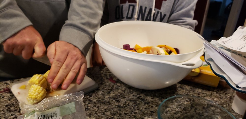 Mia also helped Ronnie prepare the roasted vegetables and a wedged salad. She did a fantastic job helping us prepare our Sunday dinner!