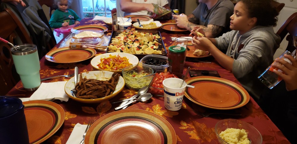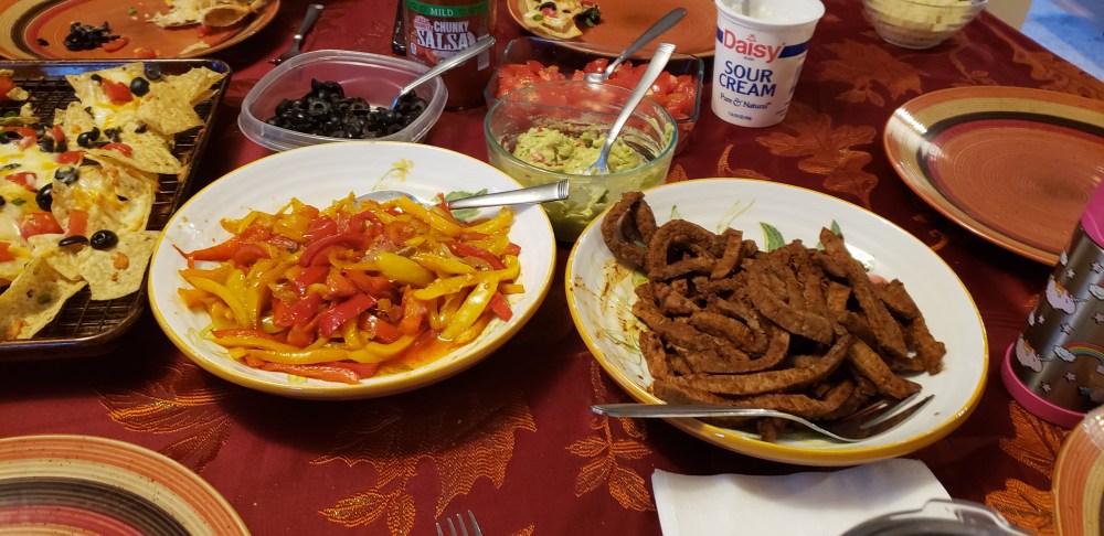 Anthony’s suggestion for Sunday dinner, Fajitas and nachos, Allie chimed in and said she would make steak egg rolls; not the typical food for Sunday but I loved the ideas. Allie asked if I would also make pizza because she loves the way the house smells when she walks in, she says it reminds her of her Nana. Nyla was hands on with the egg rolls, she helped prepare them, even tried frying them. Since Ronnie wasn’t feeling too well, Anthony, Allie and Isaiah did most of the cooking, I have to say they all step up to the plate when I need them. Anthony grilled the steak and chicken for the fajitas, Isaiah seasoned everything. Nyla made the brownies, and we also had cupcakes. The day turned out to be very enjoyable and relaxing.