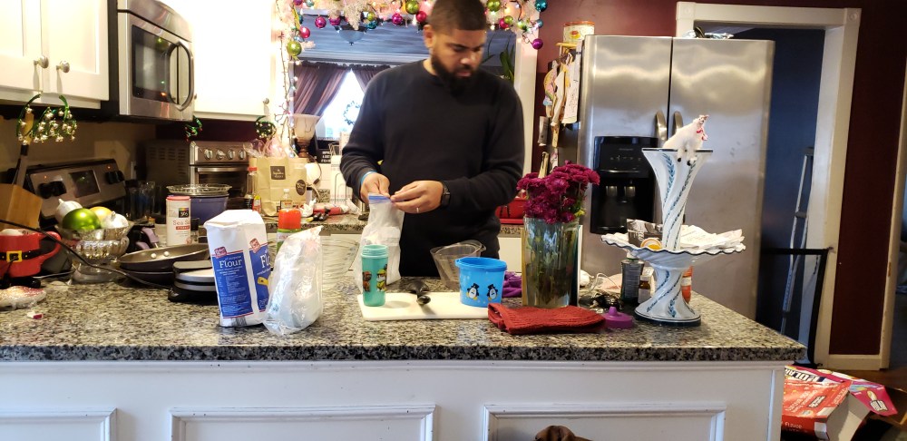 Nyla called me Saturday night to suggest that we have breakfast for Sunday dinner. We all thought it was a good idea, and since Isaiah offered to make all of it, I was very happy. Allie and Mia are away at a cheerleading competition, and Teri is at a baby shower; it was another quiet Sunday. Isaiah did a great job making homemade waffles, breakfast sausages, bacon, scrambled eggs, and home fries. I have to say once again, my kids always come through for me.