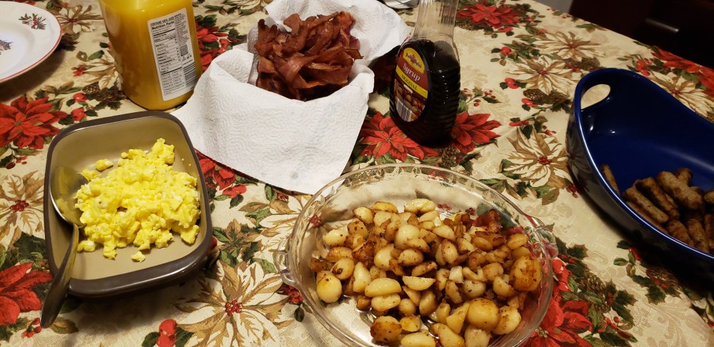 Nyla good choice breakfast is good to have anytime … and dad did a great job everything looks so delicious and gave nana and papa a break from cooking ❤️