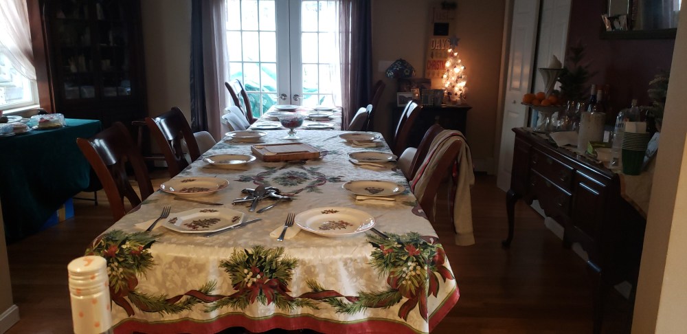 The table looks beautiful ! And the grandkids look like they are enjoying all of there gifts from you both ..