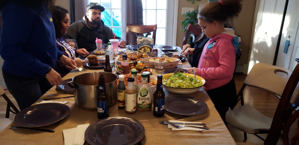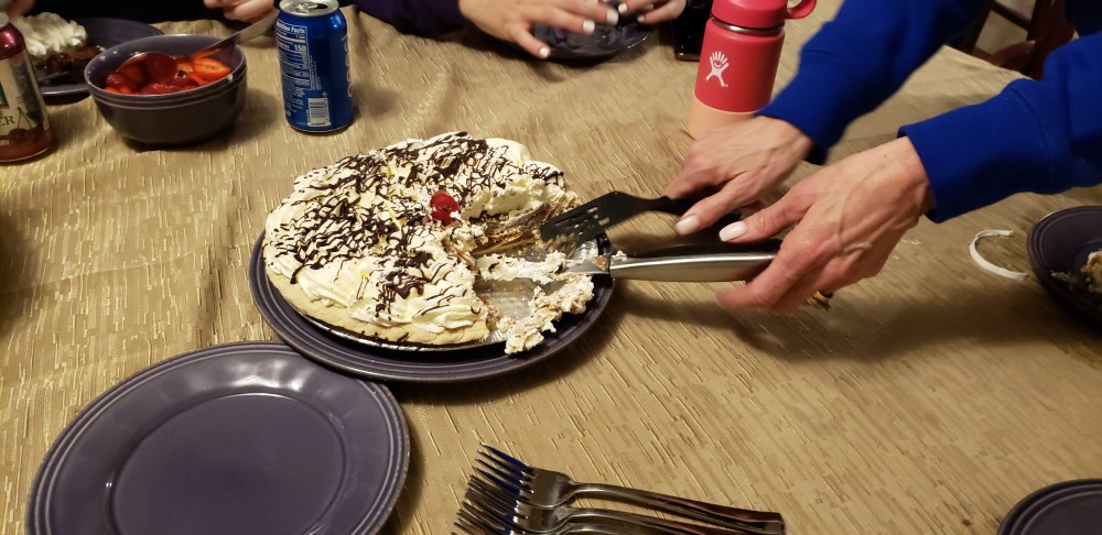 Today will be a day full of family, friends, and a lot of laughter. I love the Sundays when all my children have the same days off. I also invited our best friends, Shannon and Mike, over for dinner. I woke up nice and early to make dessert, I decided on a white cake with strawberries and whipped cream, and brownies. I finally found a recipe for white cake. I have been trying for years to make a good one from scratch. I was excited that this one came out delicious. I made my meatballs and “gravy”, chicken cutlets, roasted vegetables, salad, and Ronnie’s garlic bread. Shannon brought a chocolate cream pie which is Ronnie’s favorite. It’s always a beautiful Sunday when it is filled with people you love!