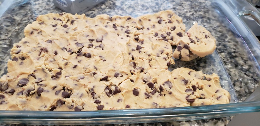 I finally made a dessert for Sunday dinner. It’s been months since I baked, and I finally felt up to it. During my recovery, I did a lot of pinning on Pinterest. I couldn’t wait until I was able to cook and bake. I made a few dinners, but baking is my real passion. I started with something easy, Chocolate Chip Cookie Delight.