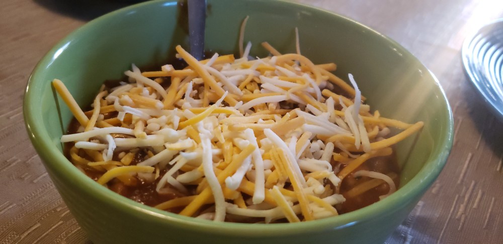 When Logan comes home for a visit, everyone is happy because we will all be together the whole time she is home. I try to make all of her favorite foods, and since she is a vegetarian, I have to be creative. On her first night home I made bean chili. It is so easy and quick to make.